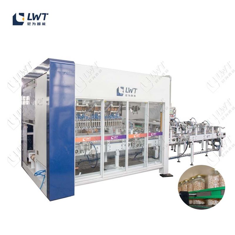 यह मशीन कांच के जार, लोहे के डिब्बे, प्लास्टिक के जार, बड़े मुंह की बोतल आदि के लिए उपयुक्त है। मुख्य रूप से बीन्स, पीच फ्लैप, पीच स्ट्रिप, हॉथर्न, स्ट्रॉबेरी, अंगूर, एप्रिकोट्स, लिची के लिए उपयोग किया जाता है।,सोया सॉस मांस,चिकन,मछली आदि में ब्राइस,किसी भी प्रकार के ठोस उत्पादों को डिब्बाबंद करना और भरना।